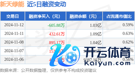 本站音讯,11月12日,新天绿能(600956)融资买入1897.78万元,融资偿还2503.66万元,融资净卖出605.88万元,融资余额1.03亿元万博manbext网站登录,近20个交夙昔中有11个交夙昔出现融资净买入。