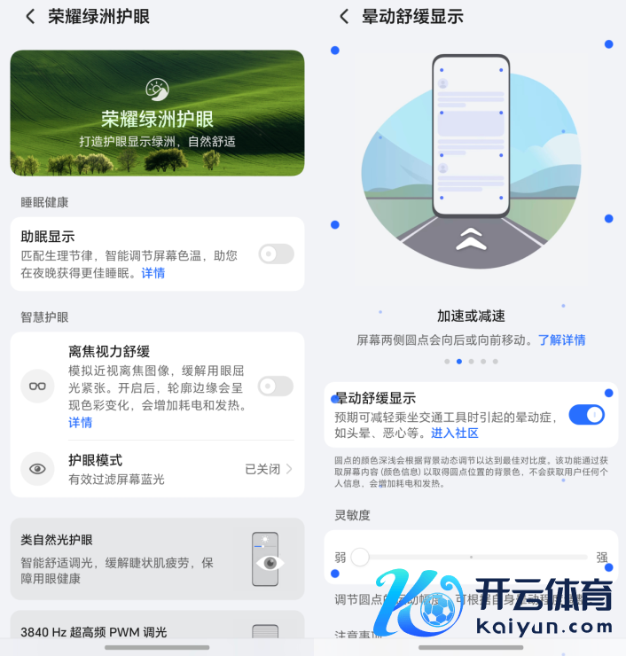 保证游戏体验的同期,荣耀也莫得忘了关于用户眼部健康的呵护。