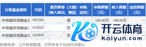 本站音尘,2月22日中信建投基金搞定有限公司发布《中信建投添鑫宝货币商场基金颐养代销渠谈大额申购(含大额如期定额投资)、大额颐养转入公告》。公告中教唆,为了保护基金份额执有东谈主的利益万博manbext网站登录app娱乐,保证基金的巩固运作,自2025年2月24日起中信建投添鑫宝货币商场基金颐养代销渠谈大额申购(含大额如期定额投资)、大额颐养转入,下属分级基金颐养明细如下: