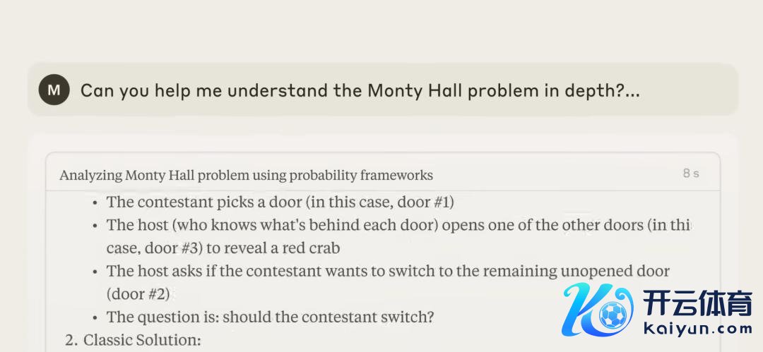 假定你想破解一个博弈论数知识题——蒙提霍尔问题,扔给Claude 3.7 Sonnet,然后同期遴荐「Extended」模式。